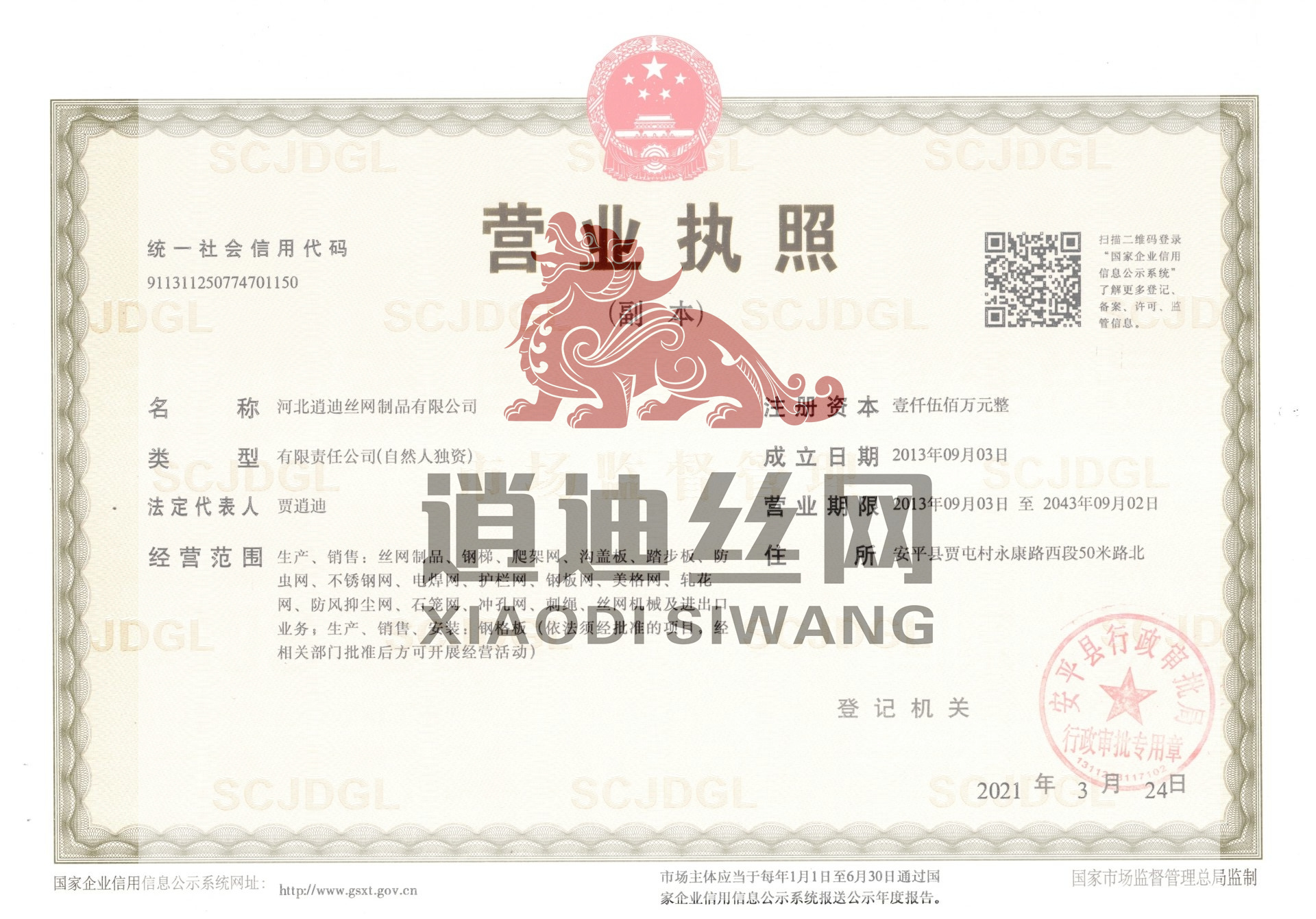 河北逍迪絲網(wǎng)制品有限公司誠(chéng)信天下,誠(chéng)信是我們公司一個(gè)原則問(wèn)題不可撼動(dòng)的,以心中有誠(chéng)信的思想結(jié)交五湖四海的朋友,能達(dá)到雙贏(yíng)是最好的,我們堅(jiān)信朋友多了路好走,我們公司都是老朋友多,我們一直是這樣做的。河北逍迪絲網(wǎng)制品有限公司成立于2013年注冊(cè)資本壹仟伍佰萬(wàn)整,主要生產(chǎn)沖孔網(wǎng),鋼格板,金屬防蟲(chóng)網(wǎng),如實(shí)的實(shí)體廠(chǎng)家,是一家-研發(fā)-銷(xiāo)售-生產(chǎn)-安裝-售后一條龍公司,2019年通過(guò)了ISO 9001認(rèn)證管理體系符合GB/T 19001-2016/ISO 9001:2015標(biāo)準(zhǔn),同時(shí)通過(guò)了SGS認(rèn)證,擁有商標(biāo)版權(quán)2品牌,擁有一個(gè)著作版權(quán),河北逍迪絲網(wǎng)制品有限公司位于中國(guó)有名的(絲網(wǎng)之鄉(xiāng))安平縣,于天津,北京,雄安,石家莊相鄰,交通非常發(fā)達(dá),出口可以選擇天津港口非常近每天都有接貨送貨往返車(chē)輛,空運(yùn)可以選擇石家莊正定機(jī)場(chǎng),附近也有鐵路運(yùn)輸,當(dāng)?shù)剡€有兩個(gè)生態(tài)物流園區(qū)發(fā)往全國(guó)各地,我們沖孔網(wǎng)工廠(chǎng)生產(chǎn)設(shè)備有:普通沖壓機(jī),高速?zèng)_壓機(jī),自主研發(fā)小微孔沖壓機(jī),龍門(mén)沖,磚塔沖孔,重型沖孔機(jī),萬(wàn)瓦級(jí)別激光切割機(jī),3000W激光切割機(jī),焊接設(shè)備,折彎?rùn)C(jī),校平機(jī),剪板機(jī),精密校平機(jī),(對(duì)板面平整度要求苛刻的客戶(hù)群體0.5-0.2誤差)我們公司銷(xiāo)售市場(chǎng)沒(méi)有局限性國(guó)內(nèi)國(guó)外都供應(yīng),擁有出口權(quán)...